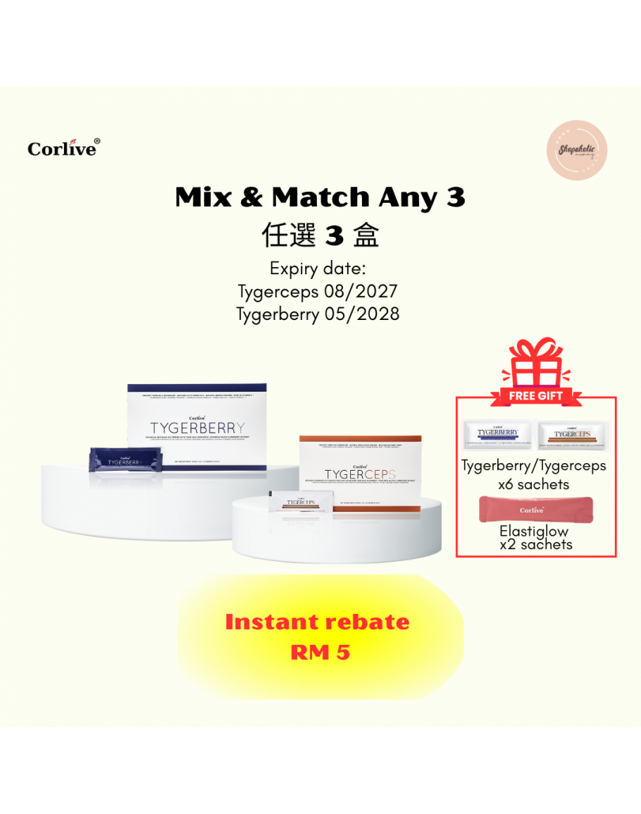 Corlive【Any 3|Mix & Match (FREE 6x Tygerberry/Tygerceps sachets + 2x Elastiglow sachets)】(商家1-3天發貨)