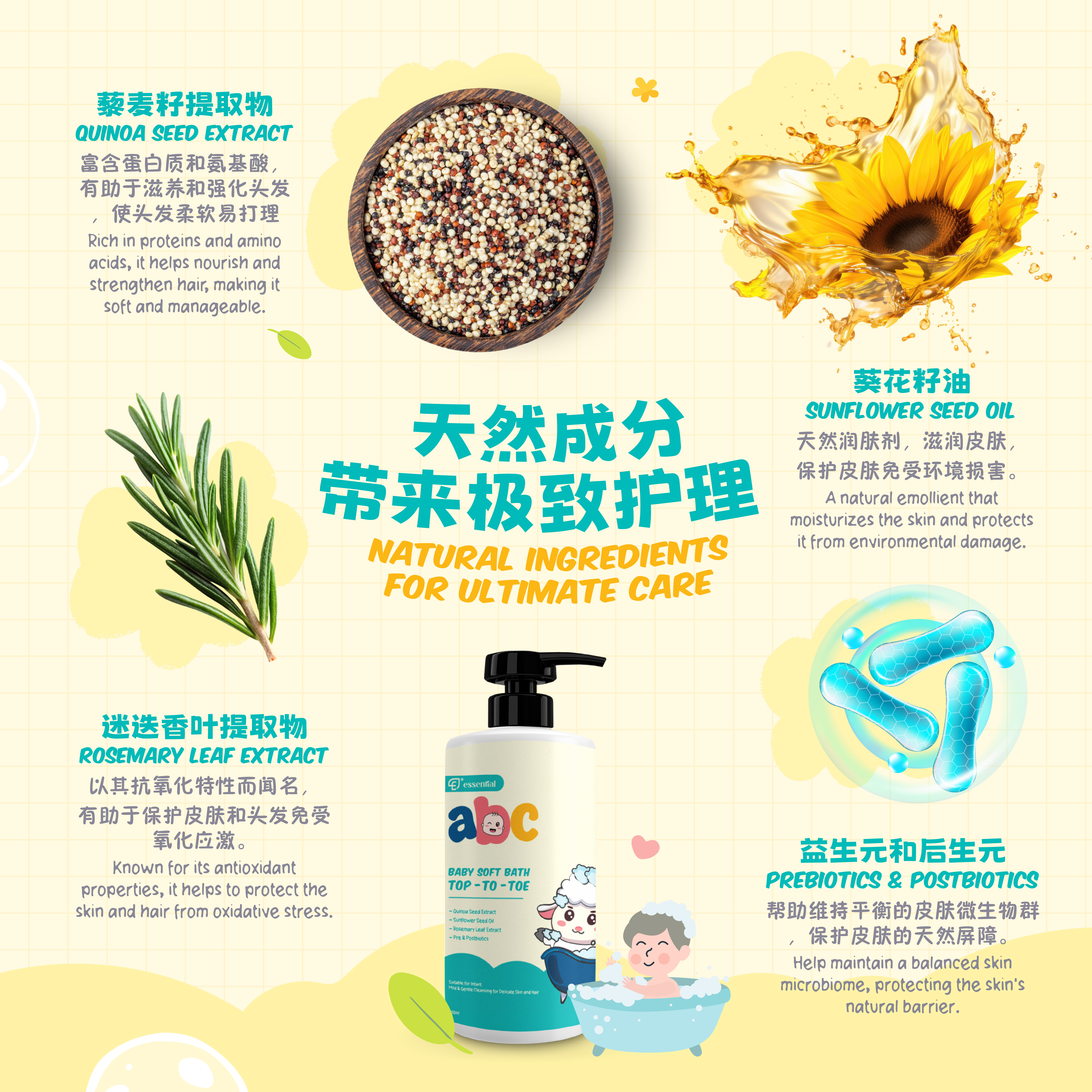 【Essential ABC|Baby Soft Bath Top to Toe 500ml】(商家1-3天發貨)
