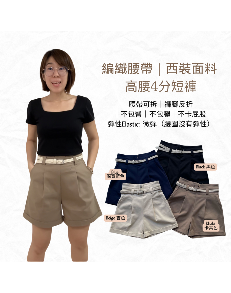 【高腰西裝4分短褲|編織腰帶】(現貨)